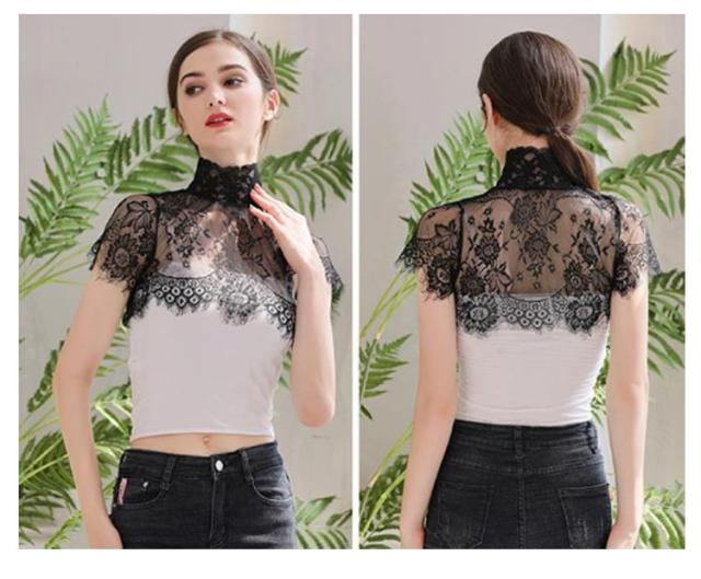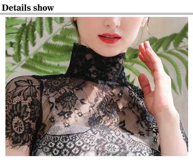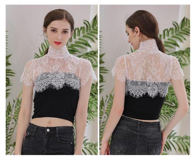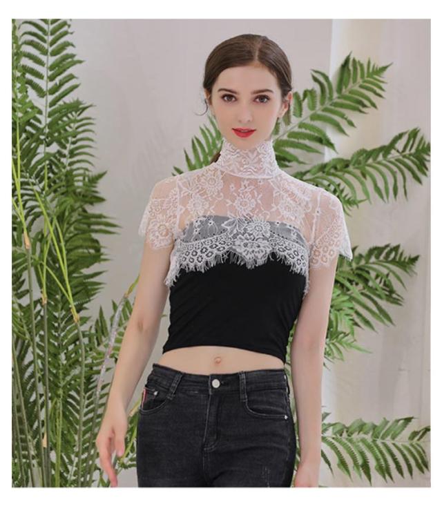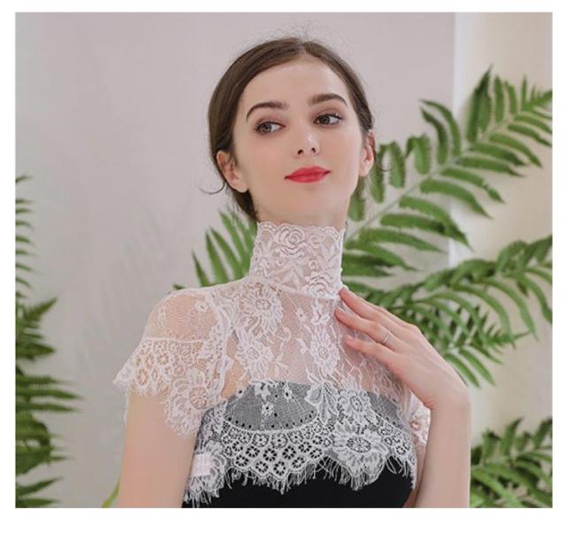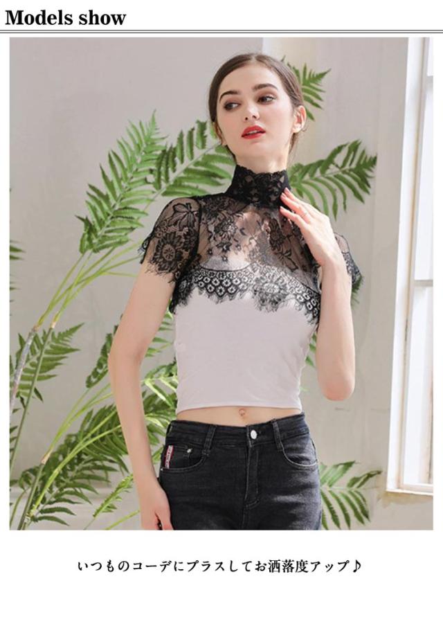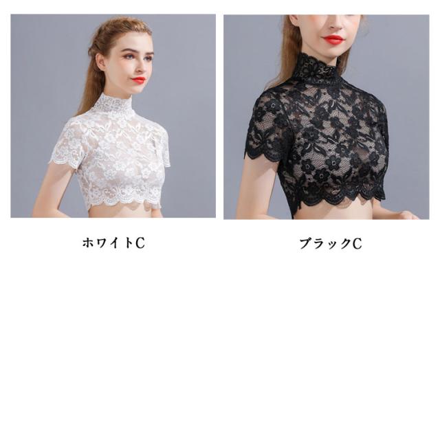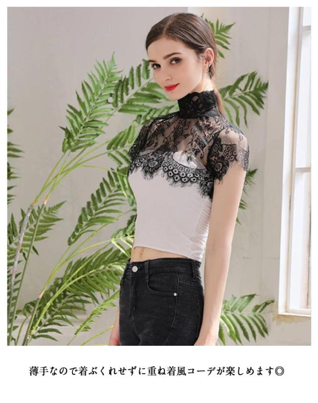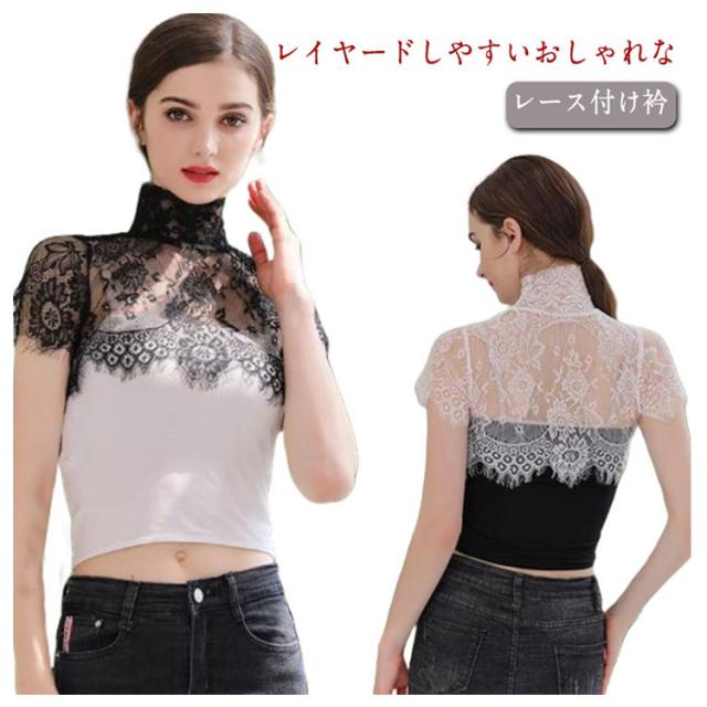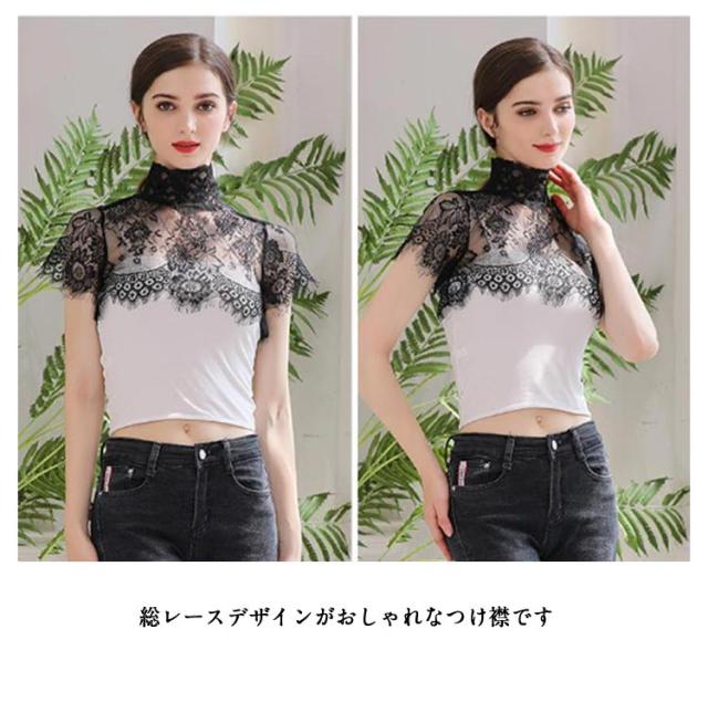 女性用 付け襟 レース ブラウス風 つけ襟 レディース フェミニン 透け感 レイヤード風 付け襟 おしゃれ つけ襟 かわいい ハイネック レース シースルー 婦人用 ブラック ホワイト ファッション小物 重ね着風 ノースリーブ きれいめ 女性用