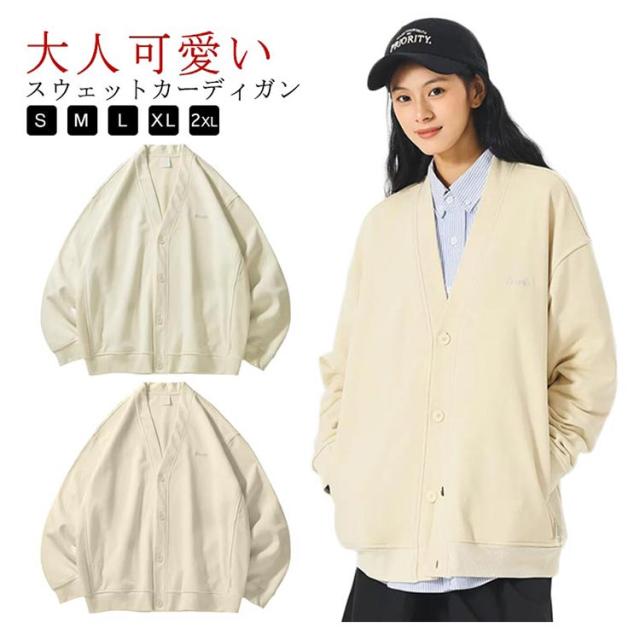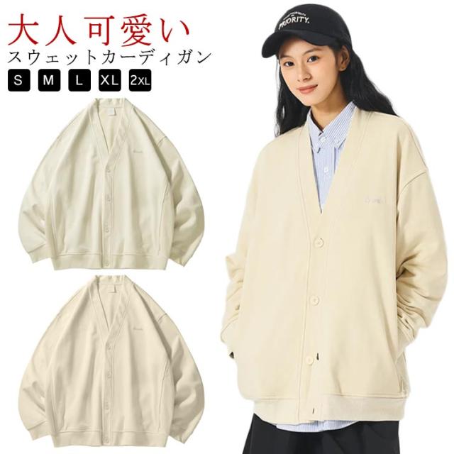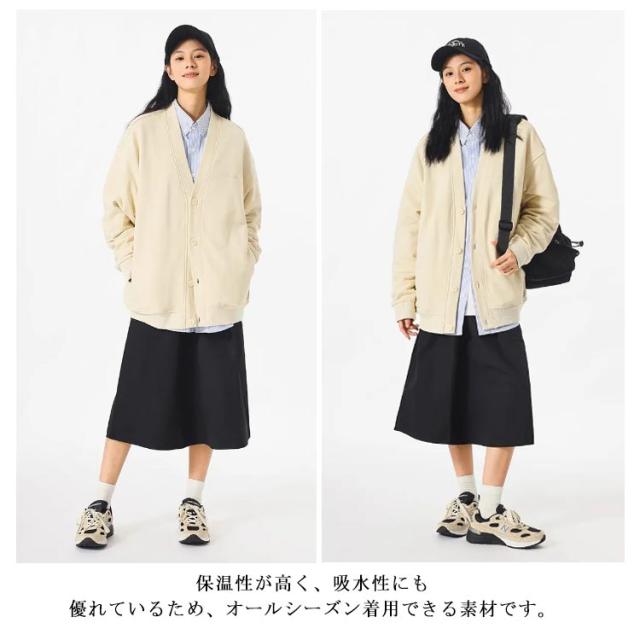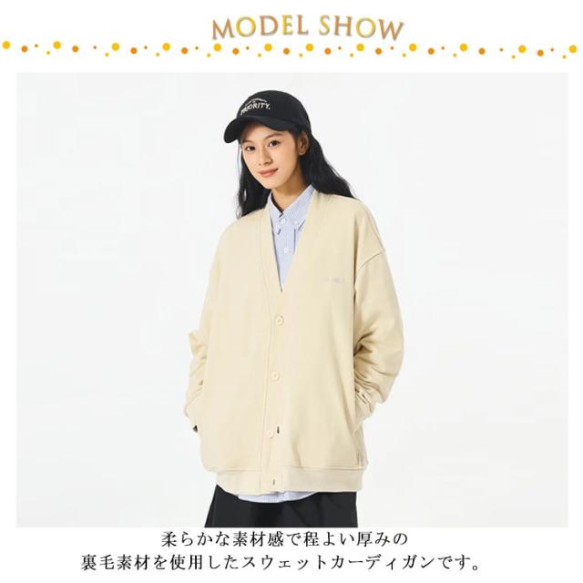 裏毛 長袖 アウター レディース 羽織り Vネック カーディガン カーディガン 冬 スウェットカーディガン トップス スウェット カーデ ボタン ゆったり ポケット付き スエットカーディガン ボタン 大人 カジュアル ライトアウター