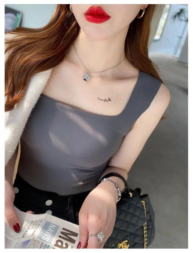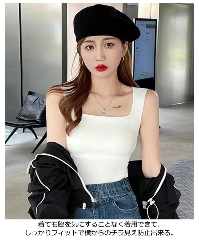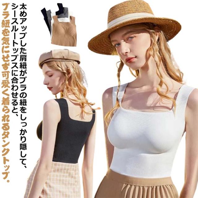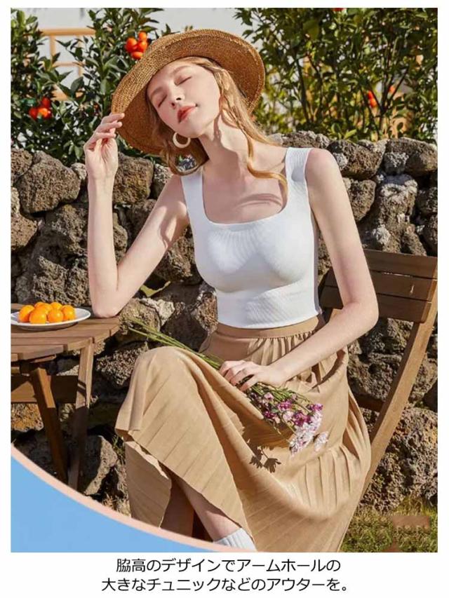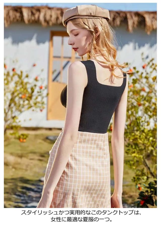 | 太めアップした肩紐がブラの紐をしっかり隠して、 シースルートップスに合わせると、ブラ紐を気にせず可愛く着られるタンクトップ 女性の体にフィットするようデザインされた、肌触りの良い 脇高のデザインでアームホールの大きなチュニックなどのアウターを 着ても脇を気にすることなく着用できて、しっかりフィットで横からのチラ見え防止出来る リブで伸縮性は素晴らしくて、体に窮屈感はないから着心地は快適 スタイリッシュかつ実用的なこのタンクトップは、女性に最適な夏服の一つ | |