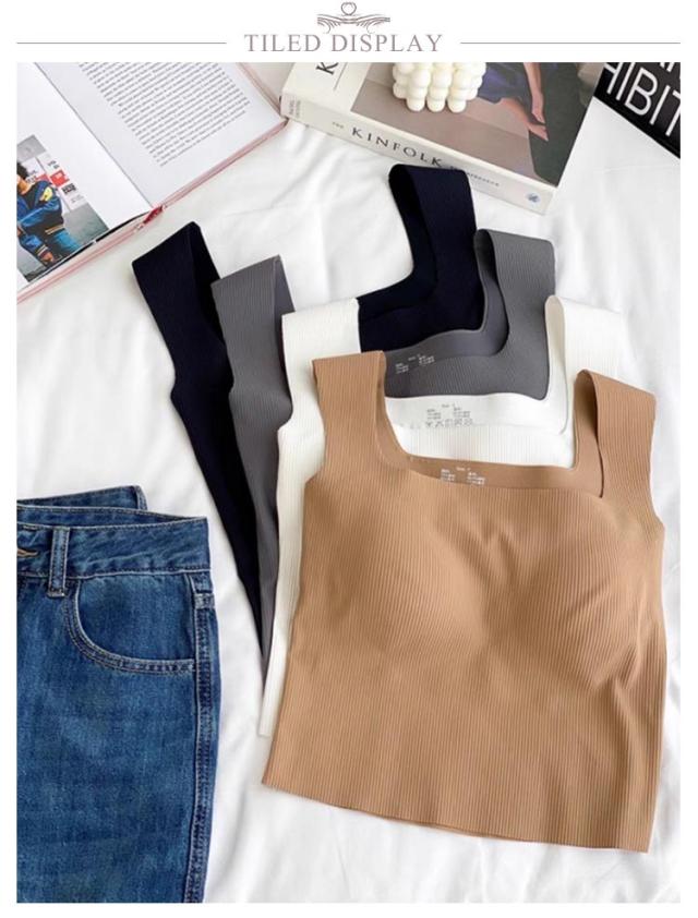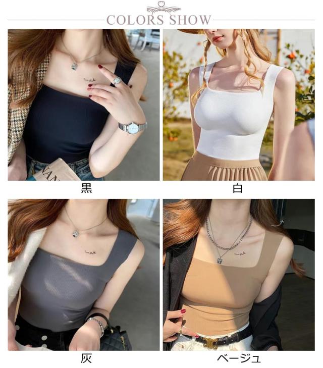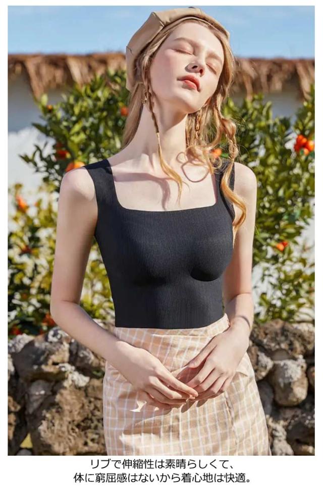 タンクトップ カップ付き キャミソール スクエアネック ブラトップ タンクトップ シームレス ノンワイヤー スクエアネック カップ付きインナー ナイトブラ ブラキャミ 夏 レディース 黒 白 灰 ベージュ