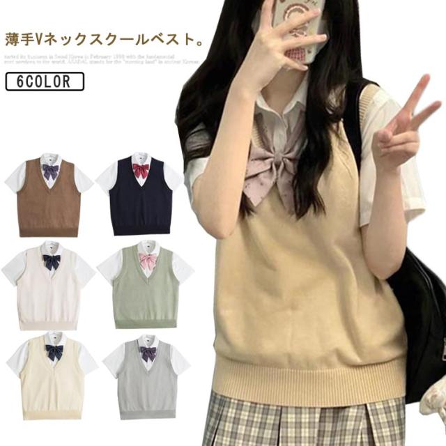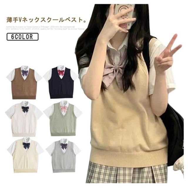 涼しい 夏用 薄い ベスト 制服 スクール Vネック 無地 レディース ニットベスト セーター ニット JK制服 ノースリーブ 高校生 中学生 女子高生 スクールベスト ベスト コスチューム 学生服 通学