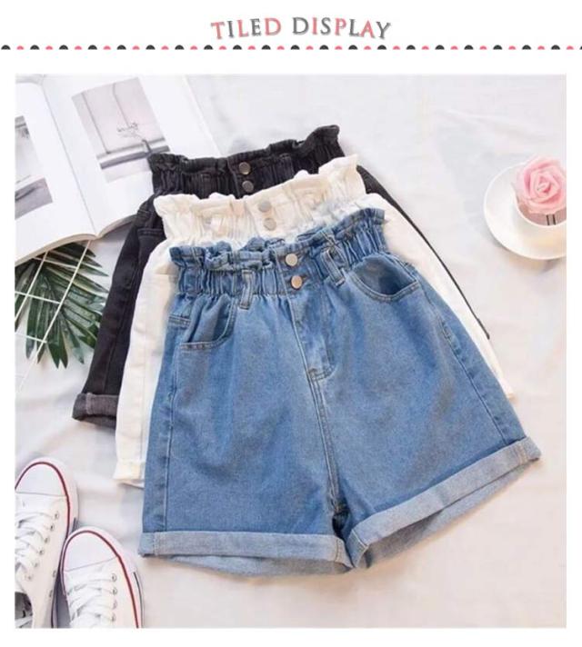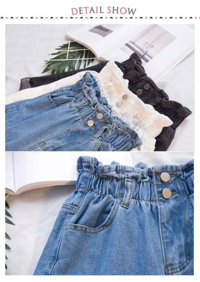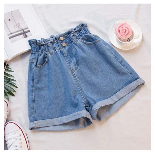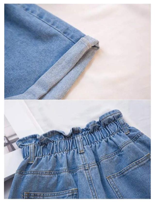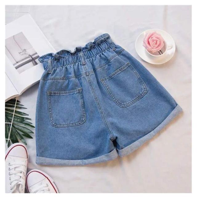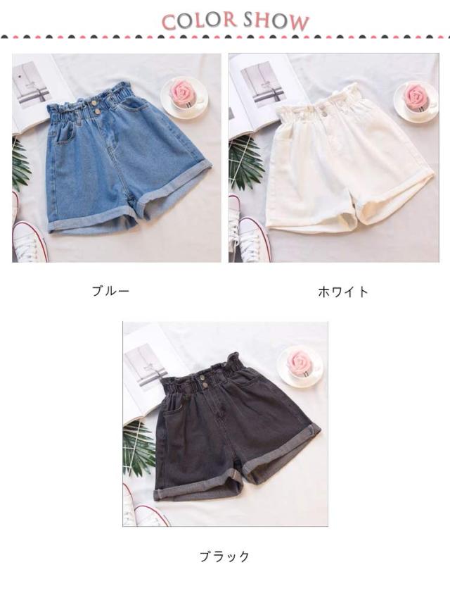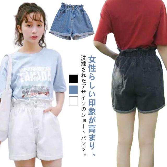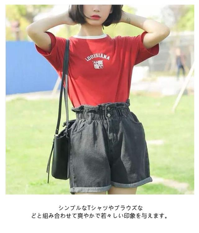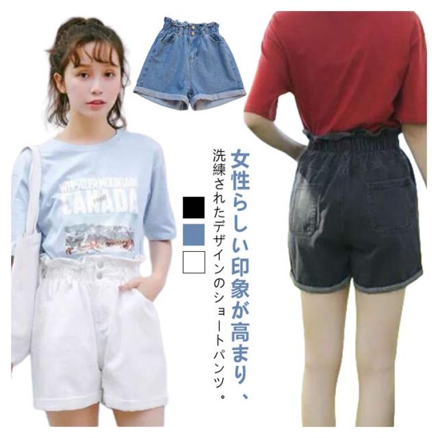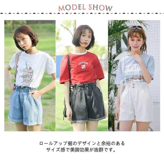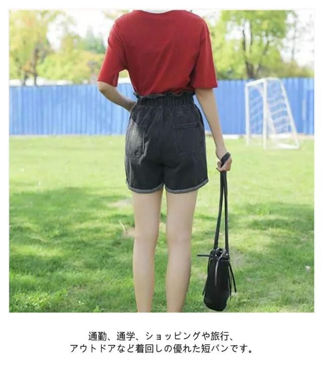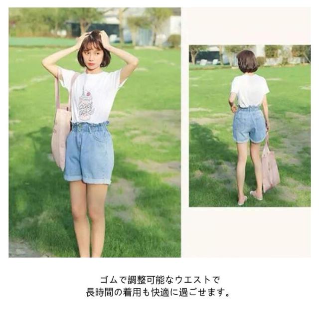 レディース 美脚 レディース デニムパンツ 短パン ジーンズ ハイウエスト ショーパン ロールアップ ゆったり ショーツ ホットパンツ ウエストゴム お洒落 カジュアル ポケット付き
