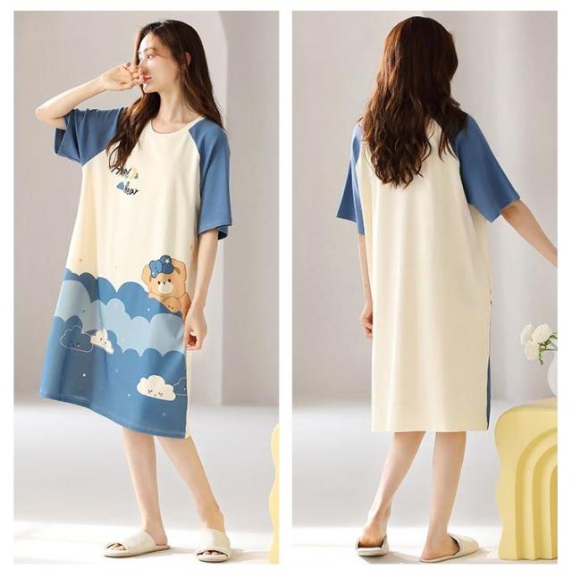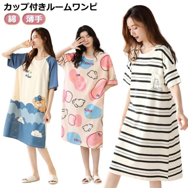 レディース ワンピース パジャマ 半袖 ロング丈 Tシャツワンピース ゆったり ブラカップ付き カップ付き コットン 綿 春 マキシワンピース 大きいサイズ 部屋着 おしゃれ かわいい 薄手 カップ付き 夏 秋 シンプル カジュアル リラックスウェア