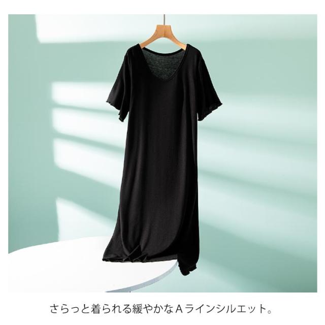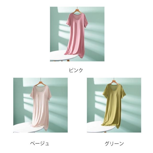 半袖 カップ付き ルームウェア おうち ルームワンピース ロング丈 シンプル パジャマ ワンピース 体型カバー 部屋着 寝間着 モダール カップ付き 薄手 ナイトウエア 大きいサイズ ゆったり マタニティ 春夏