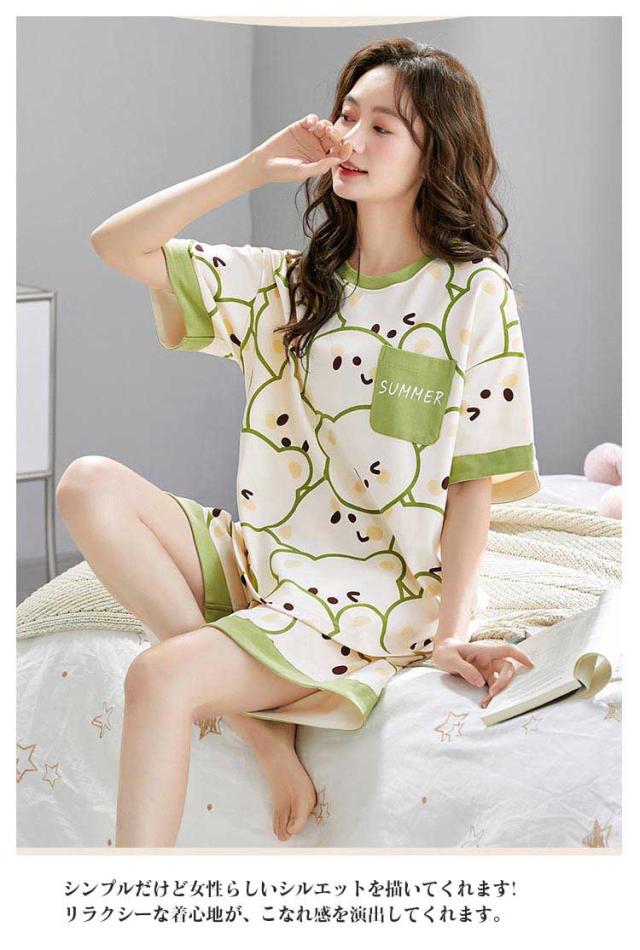 夏用パジャマ 半袖パジャマ パジャマ M 可愛いパジャマ パジャマ ルームウェア 夏用パジャマ ばくね XL 夏 かわいい 半袖 L 襟なし 2XL 疲れが取れ レディース 半袖パジャマ 夏 部屋着 綿 上下セット 大人用 パジャマ 大きい 母の日