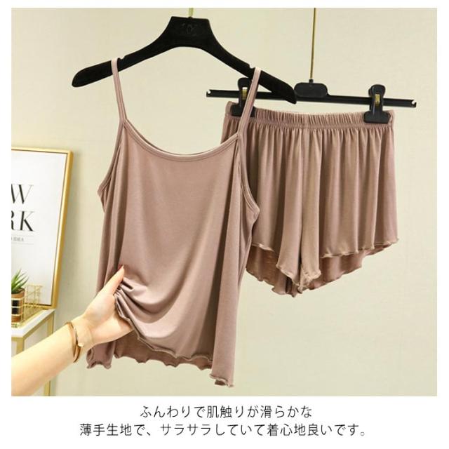 パジャマ レディース キャミ ゆったり ルームウエア 部屋着上下セット 無地 涼しい モーダル 短パン 春 夏 快適 パジャマ セットアップ シンプル 部屋着上下セット ナイトウェア キャミソール 肌見せ ゆったり かわいい リラックス ギフト