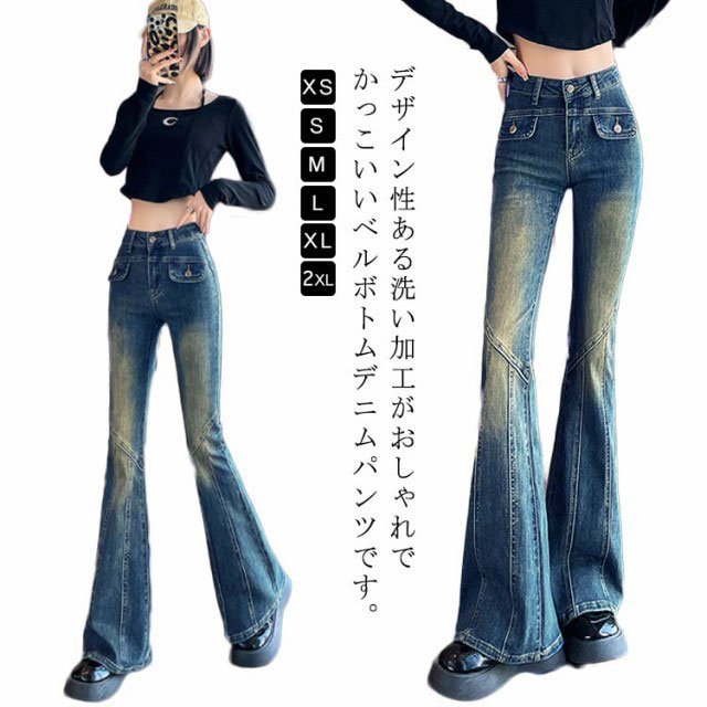 ロングパンツ フレアパンツ ジーパン ジーンズ フレアパンツ デニム ブーツカット カジュアル 韓国ファッション Gパン デニムパンツ ボトム 美脚 大人 おしゃれ 美脚 大きいサイズ スリム