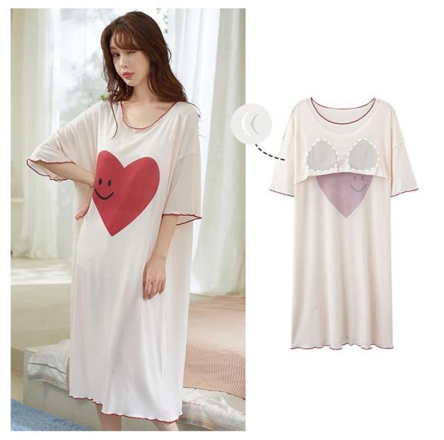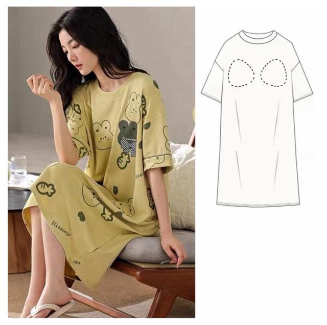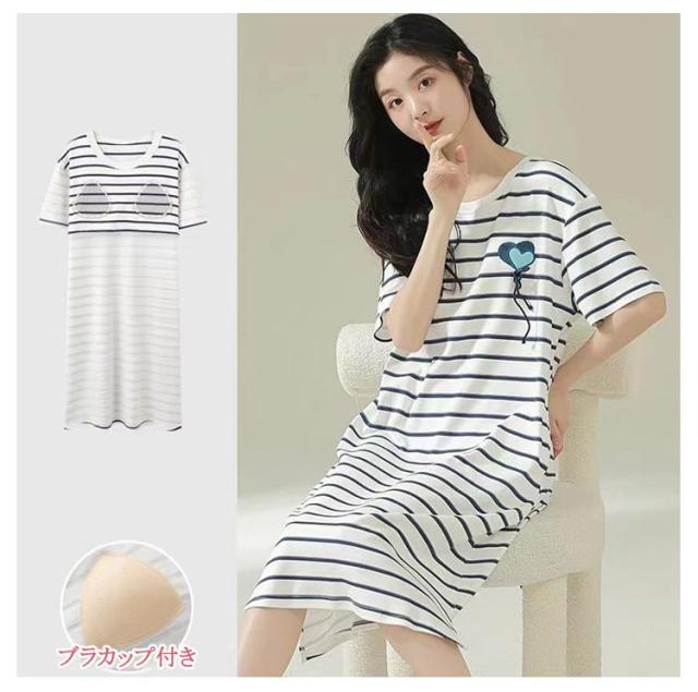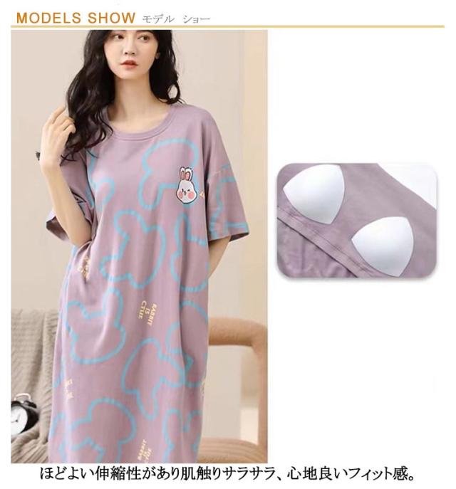 ロングTシャツワンピース 五分袖 ルームウェア レディース カップ付き 大きいサイズ ワンピース 半袖 部屋着 カップ付き ゆったり パジャマ 半袖 ブラカップ付き 寝間着 パジャマ ナイトウェア インナー おしゃれ かわいい 薄手 春