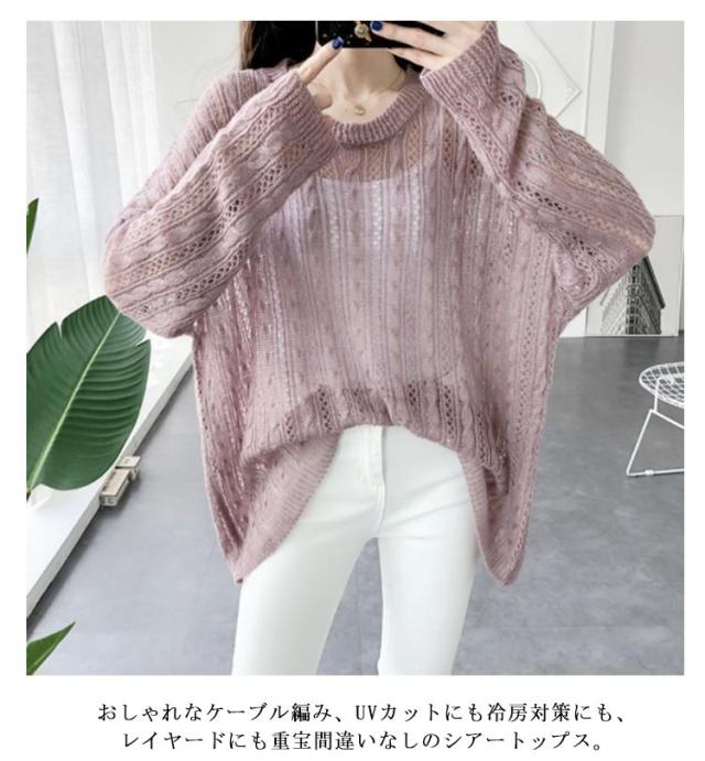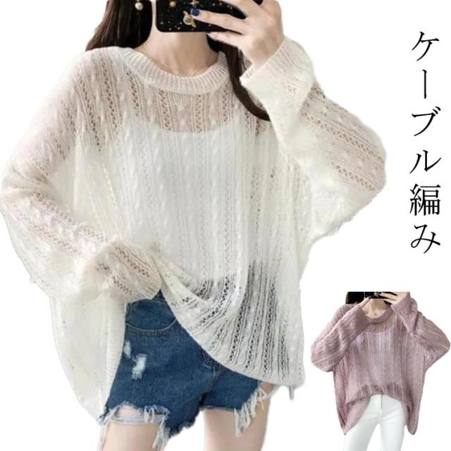 レディース XL ケーブル編み シアートップス 体型カバー ニットトップス ニット 薄手 シアー 透かし編み セーター レイヤードトップス きれいめ M 大きいサイズ S ケーブル編み L 長袖 2XL 3XL 4XL 5XL