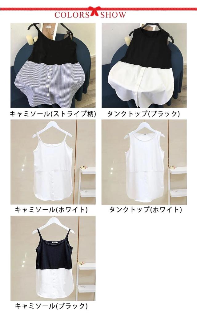 | 色 | タンクトップ(ブラック) タンクトップ(ホワイト) キャミソール(ブラック) キャミソール(ストライプ柄) キャミソール(ホワイト) |