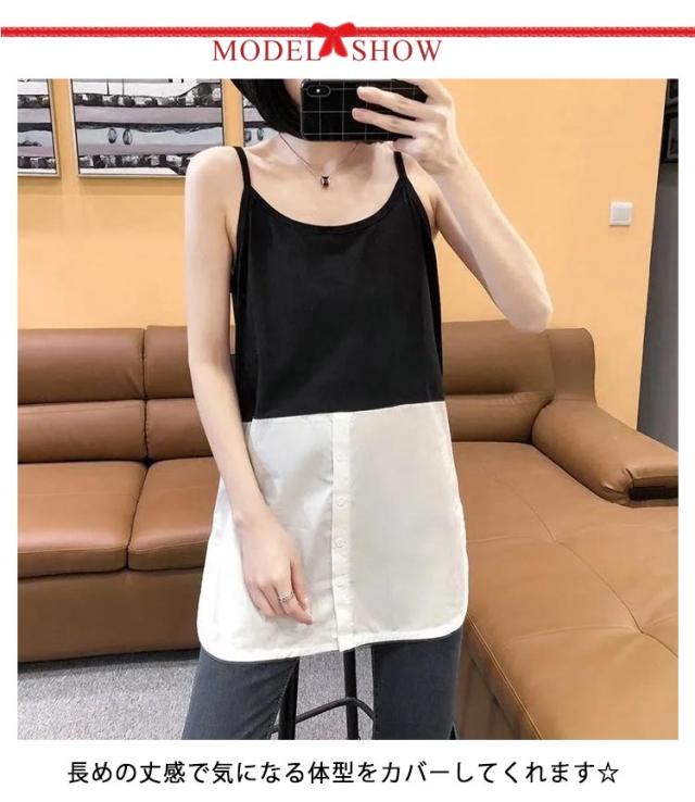 | ロング丈&ラウンドヘムのレイヤードキャミソール・タンクトップの登場です。 腰から下はシャツ風のデザインになっているのでオシャレ感たっぷり。 お手持ちのトップスの下に着るだけで旬顔になれる優れもの。 長めの丈感で気になる体型をカバーしてくれます☆ いつものコーデにプラスするだけで、簡単にこなれたレイヤードが完成する♪ | |