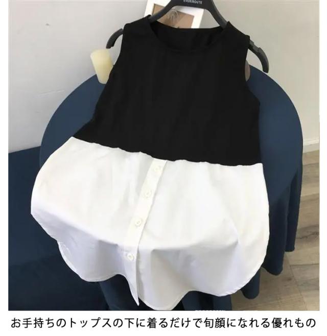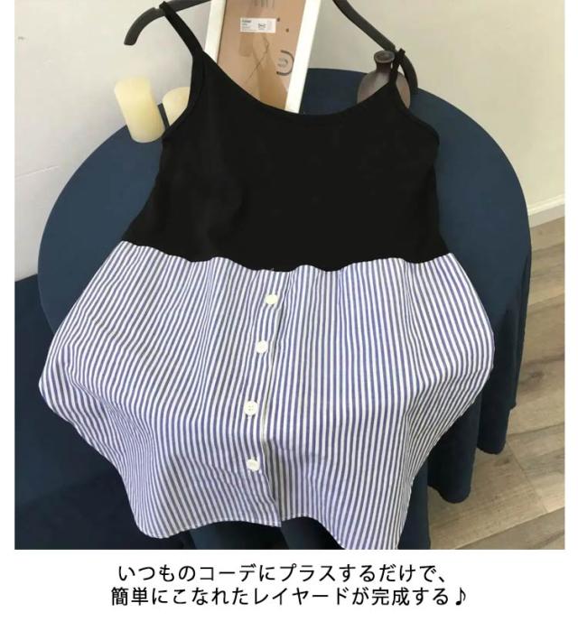 レイヤード ラウンドヘム レイヤード 重ね着 キャミソール 2タイプ レディース 白 重ね着 付け裾 タンクトップ シャツ ロング インナー 裾 無地 ストライプ柄 体型カバー 大きいサイズ 黒 レイヤード 春 夏