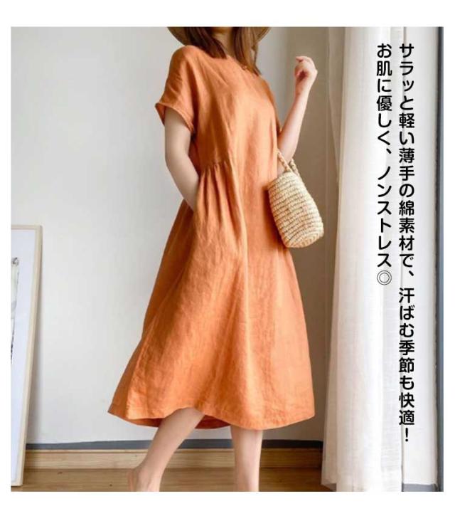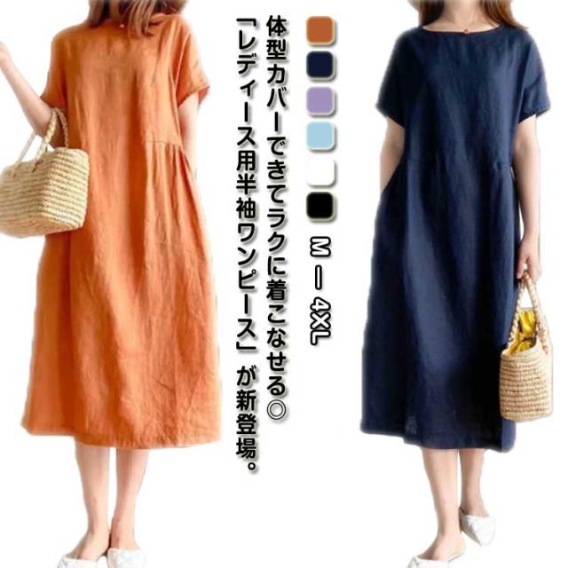 通勤 ワンピース 涼しい マキシワンピ リゾート コットン 半袖 体型カバー マキシワンピース ゆったり ワンピ 可愛い 春夏 きれいめ レディース 着心地がいい 通気性 コットン 大きいサイズ お出かけ
