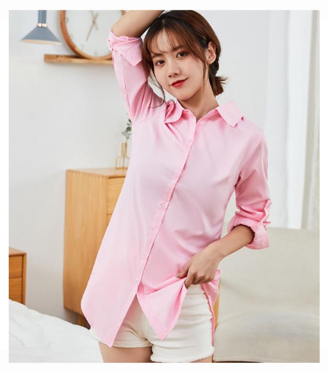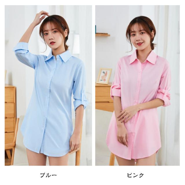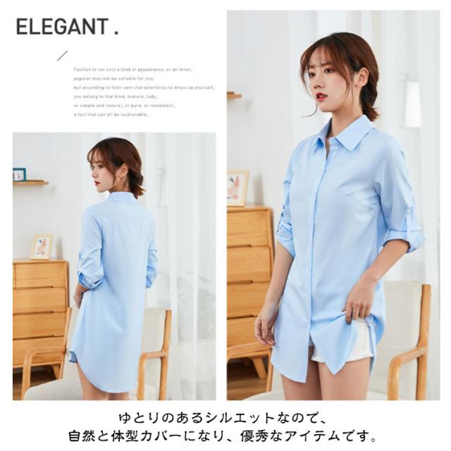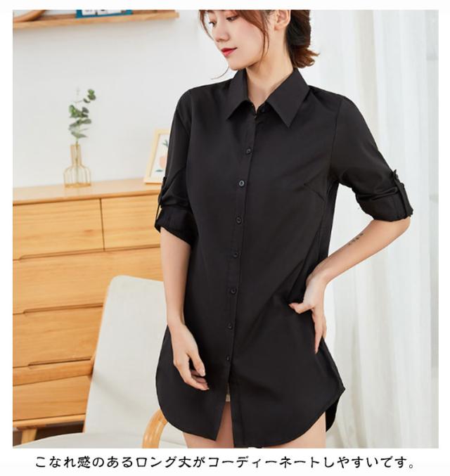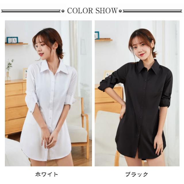 トップス レディース ブラウス 夏 フォーマル 長袖 シャツ チュニック 襟付き ロング ロング ワイシャツ ロングシャツ 大きいサイズ おしゃれ 春 秋 オフィス カジュアル 体型カバー 通勤 白 ホワイト ピンク ブルー 黒