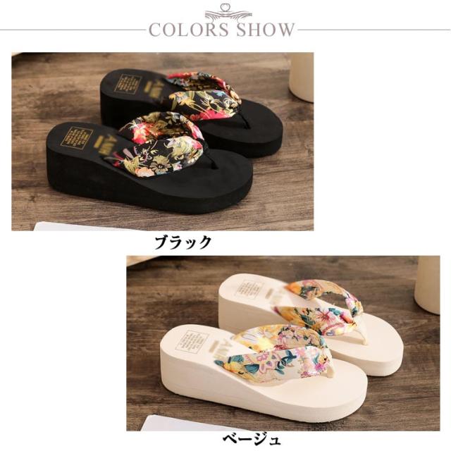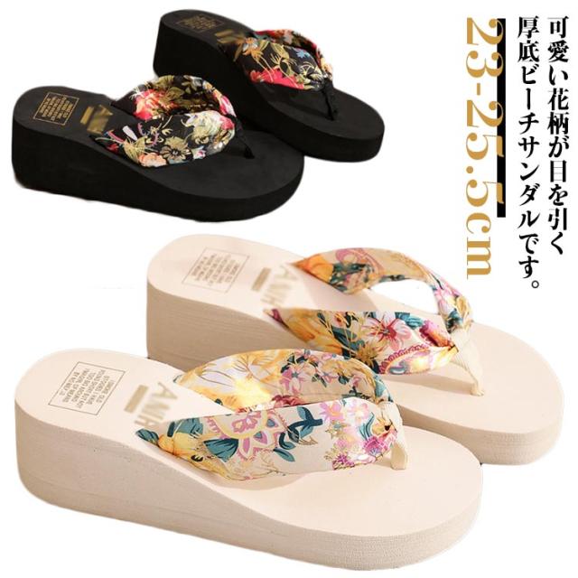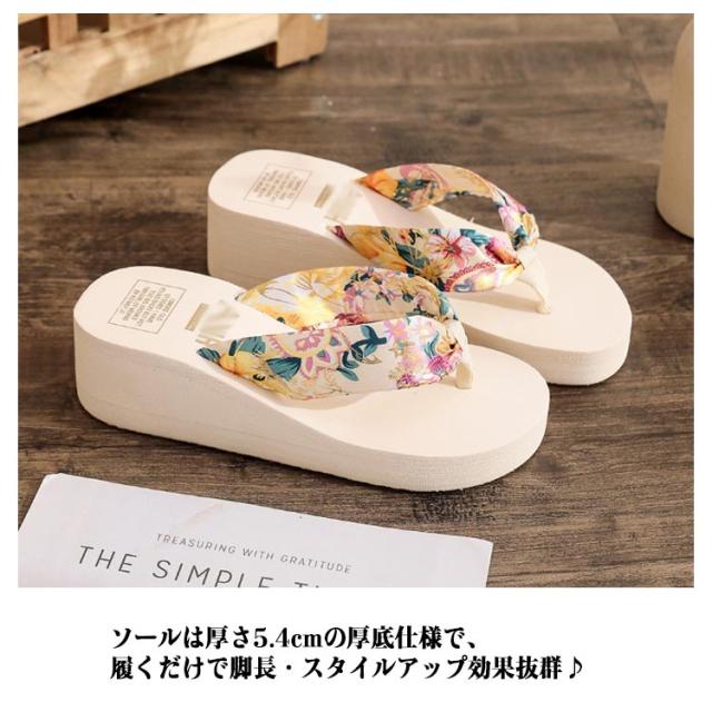 痛くない 花柄 レディース 厚底サンダル ビーサン レジャー スタイルアップ 脚長 ビーチサンダル スポーツサンダル トングサンダル 軽い 海水浴 プール 厚底サンダル 旅行 春夏 歩きやすい カジュアル きれいめ お出かけ