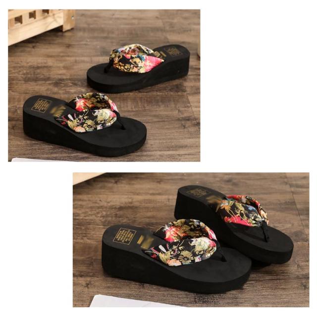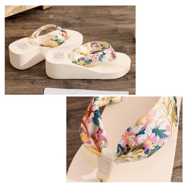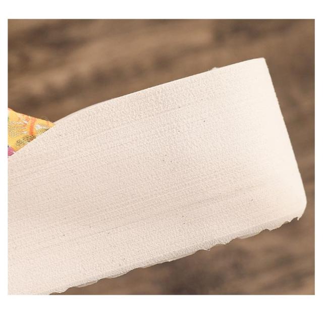 | 可愛い花柄が目を引く厚底ビーチサンダルです。 ソールは厚さ5.4cmの厚底仕様で、履くだけで脚長・スタイルアップ効果抜群♪ 歩きやすく疲れにくいソフトソールなので、一日中履いてもずっと快適に過ごせます。 鼻緒は、柔らかくサラリとした生地感で、足の甲がこすれて痛くならないのも嬉しい。 リゾートシーンをはじめ、お出かけやお買い物などのデイリーユースや、タウンユース、花火やお祭りなどのイベントにも最適です。 | |