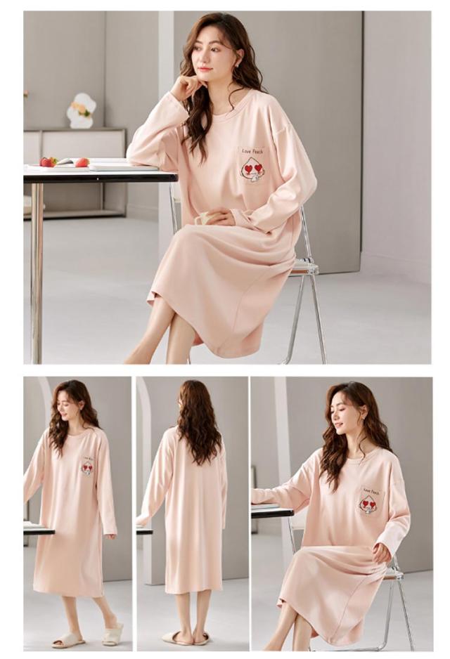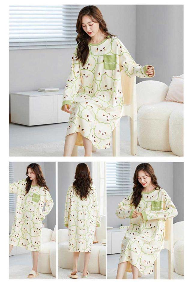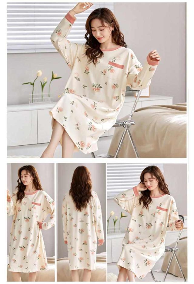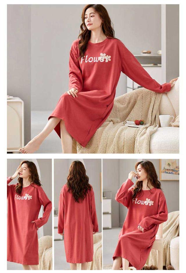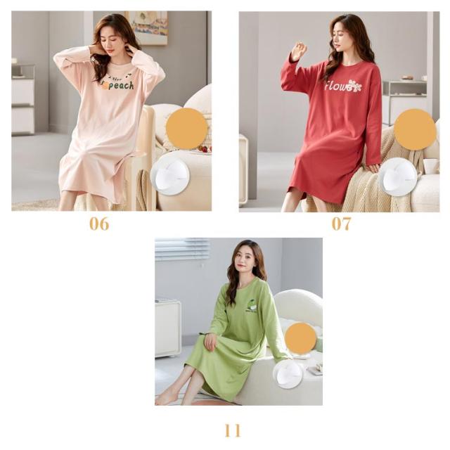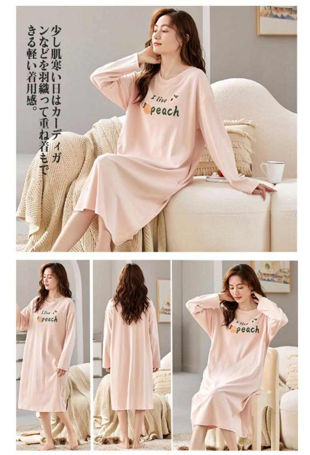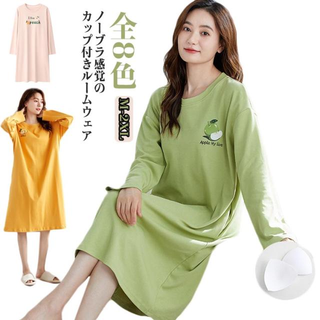 ルームウェア ワンピース パジャマ カップ付き 長袖 綿 ノンワイヤー おしゃれ 部屋着 プレゼント ロング丈 胸パッド付き 寝間着 かわいい 誕生日 コットン 秋 冬