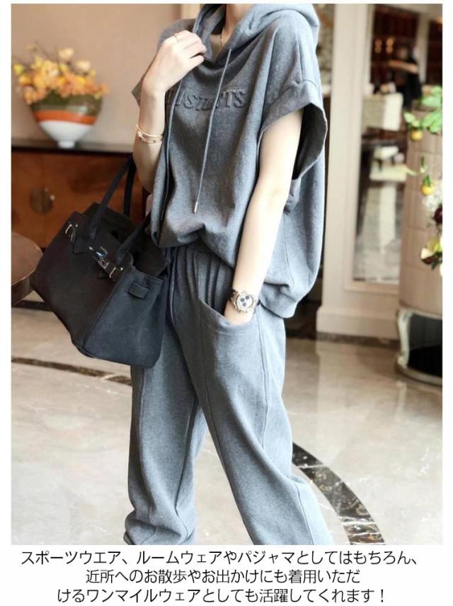スウェット 夏 カジュアル ジャージ 半袖 7分丈パンツ レディース スウェット ゆったり 春 トップス フード付き 着?せ パンツ セットアップ 部屋着 秋 2点セット おしゃれ 着痩せ 大きいサイズ ジョガーパンツ ルームウェア