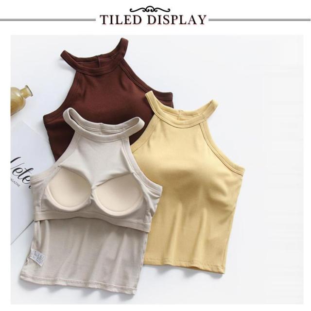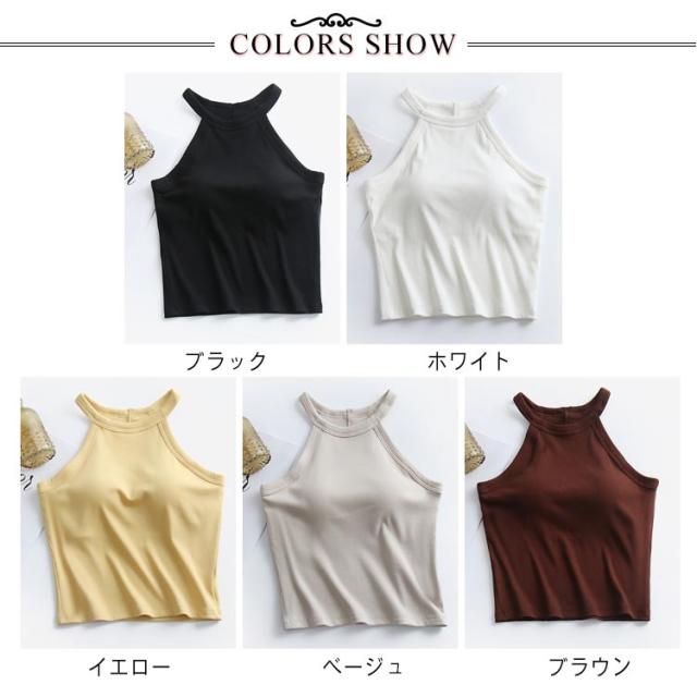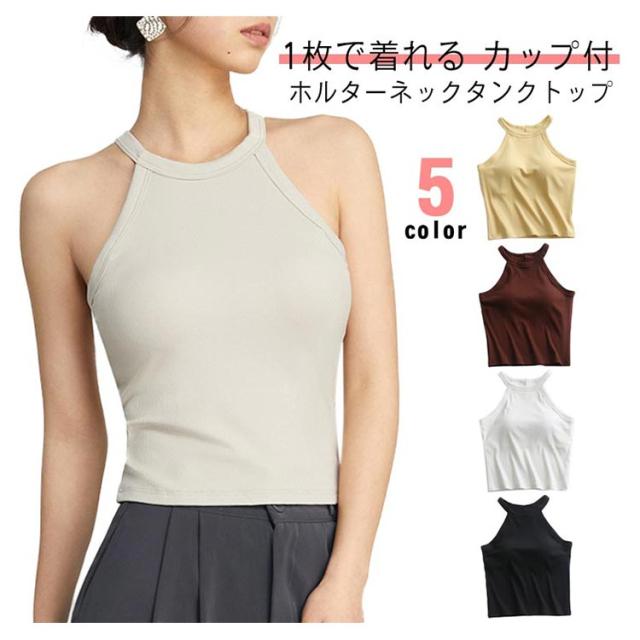 ホルターネック カップ付き カップ付き ホルターネックブラ リブ ホルター キャミソール ブラカップ ノースリーブ ブラトップ キャミ カジュアル リブ生地 ニット おしゃれ タンクトップ インナー 重ね着 無地 レディース スポーツ 白 黒 締めつけない