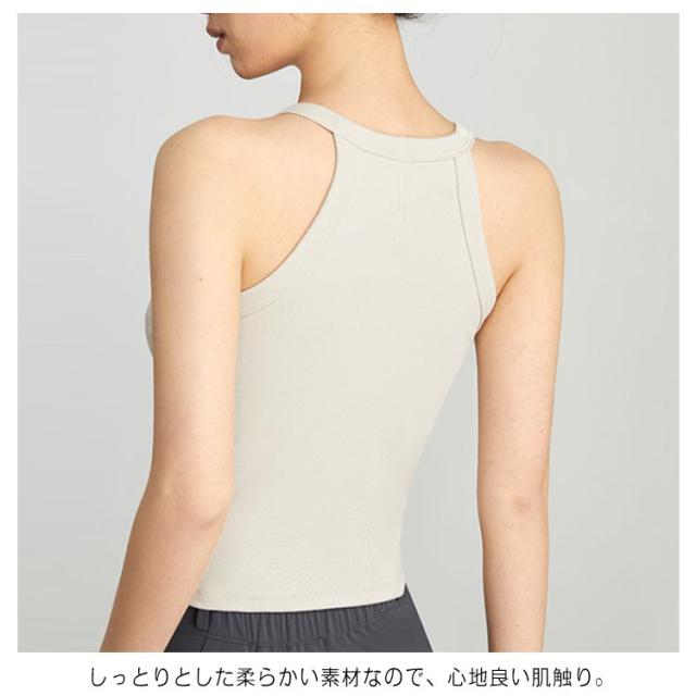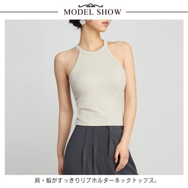 | 1枚で着れる カップ付 ホルターネックタンクトップ 肩・脇がすっきりリブホルターネックトップス。 しっとりとした柔らかい素材なので、心地良い肌触り。 程よいフィット感のあるストレッチ生地なので、重ね着にピッタリ。 | |