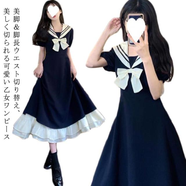 | 美脚&脚長ウエスト切り替え、美しく切られる可愛い乙女ワンピース 襟元前リボンの飾りは女らしさをプラスします。 セーラー襟だから、後姿がぐっと引き立つ。かわいいスタイルに挑戦できます。 かわいさ溢れるシルエットでガーリー&カジュアルに大変身。 | |