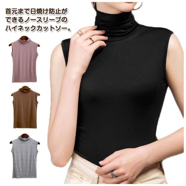 | 首元まで日焼け防止ができるノースリーブのハイネックカットソー。 身体に程よくフィットし、もたつき感なく着用できます。 柔らかい素材通気性がよく、ストレスフリーな着心地♪ 電車やオフィスなどの冷房対策としてもオススメ。 ストレッチ性が高い素材を使用しており、身体のラインに沿って綺麗にフィットします。 ノースリーブなので上にカーディガンやシャツ、ジャケットを着ても袖がもたつかないのが嬉しいポイント♪ | |