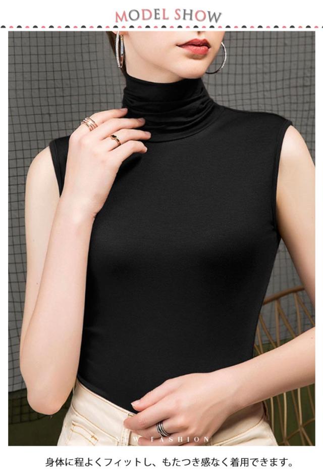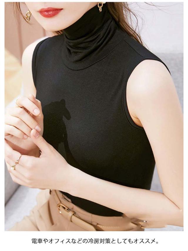 薄手 2枚セット タンクトップ カットソー ハイネック インナー レディース 無地 ノースリーブ レイヤード Tシャツ トップス 夏物 UVカット シンプル カジュアル 着痩せ お洒落