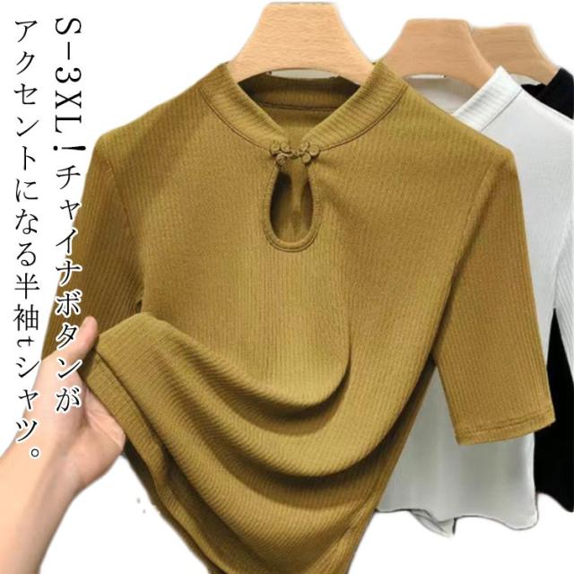 Tシャツ 通勤 チャイナ服 ブラウス 中国風 レディース トップス ブラウス シャツ 春 夏 オシャレ チャイナ風 カットソー かわいい オフィス 薄手 エレガント 半袖tシャツ カジュアル ストレッチ 着?せ 普段着 中華 半袖 S M L XL 2XL 3XL