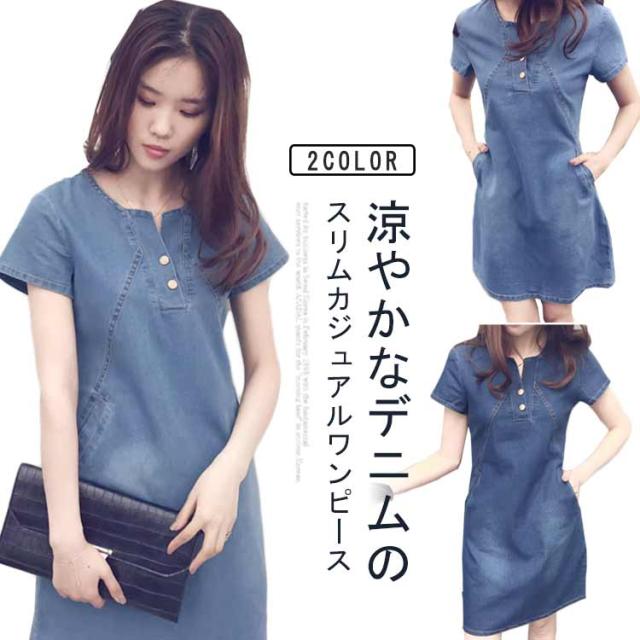 おしゃれ レディース 無地 デニムワンピース 通勤 夏服 スリム 半袖 半袖ワンピース カジュアル 切り替え 大きいサイズ 大人 夏 女性 膝上丈 かわいい シンプル 可愛い 体型カバー 着?せ デニムワンピース 通学 プレゼント ギフト