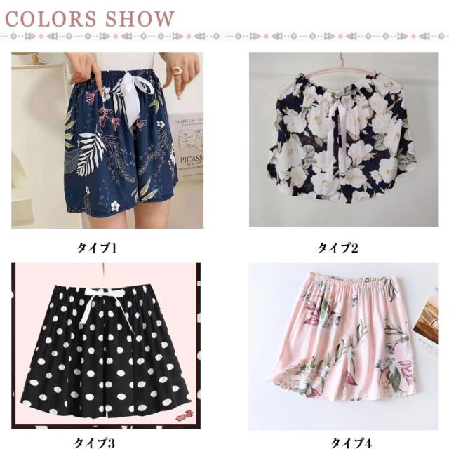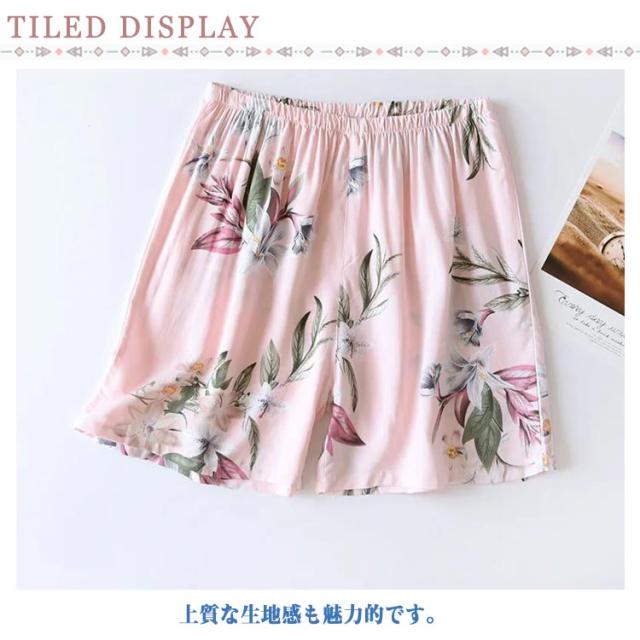 ルームウェア 総柄 さらさら ルームウェア 春夏 レディース 部屋着 ハーフパンツ 短パン 可愛い ボトムス パジャマ ルームパンツ 接触冷感 パンツ 2枚セット 夏用 リラックスパンツ 半ズボン ボトムス 涼しい