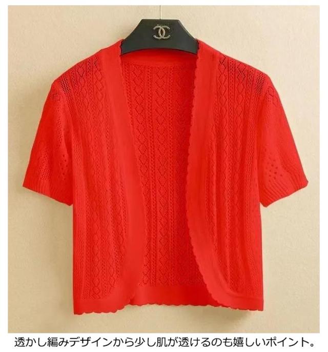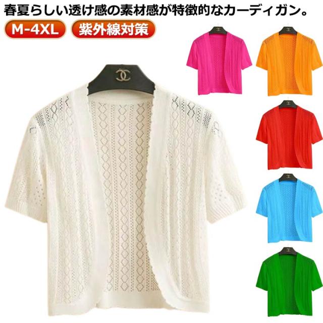 ボレロ シンプル 薄手 ニットカーディガン 半袖 カーディガン ニットトップス 透かし編み レディース ボレロ ボレロ 夏 夏用 サマーニット トップス 肩掛け 羽織 アウター ジャケット フェミニン カジュアル 冷房対策 紫外線対策 大きいサイズ 送料無料