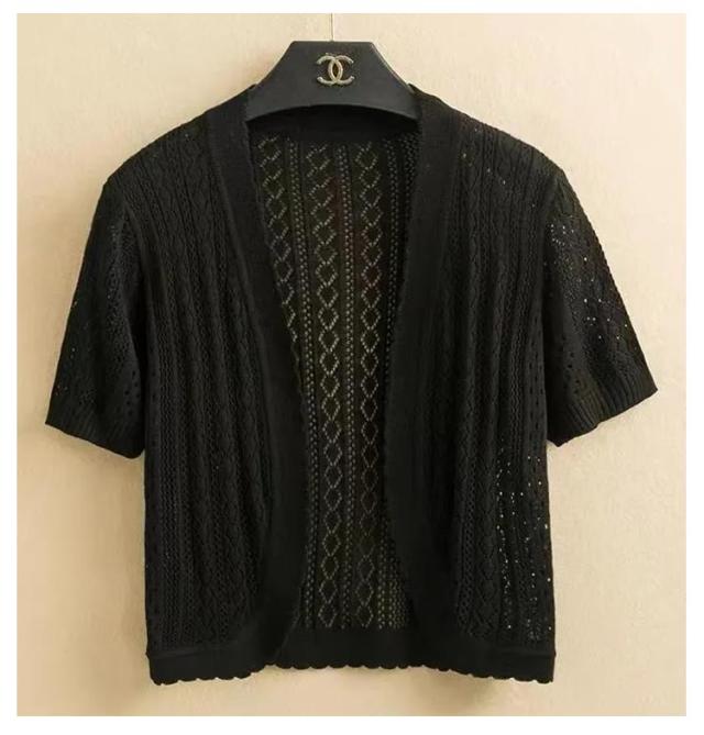 | M-4XL!春夏らしい透け感の素材感が特徴的なカーディガン。 ショット丈デザインでスッキリとした印象を与えてくれる。 透かし編みデザインから少し肌が透けるのも嬉しいポイント。 薄手の柔らかなニット生地で快適な穿き心地を実現! | |