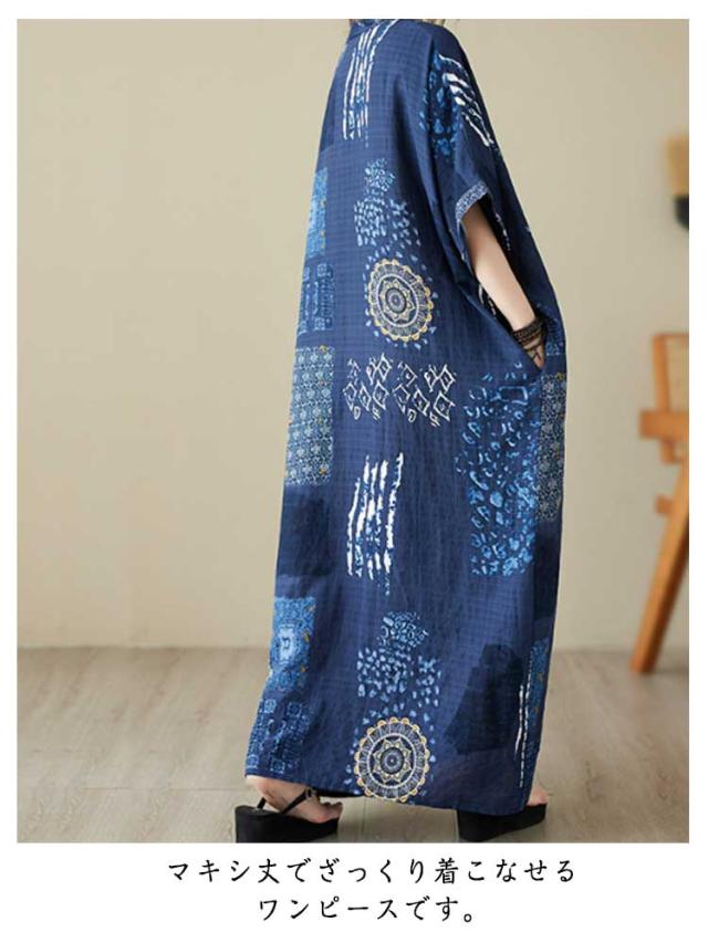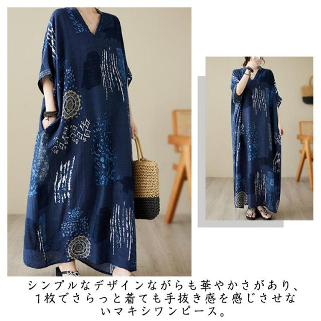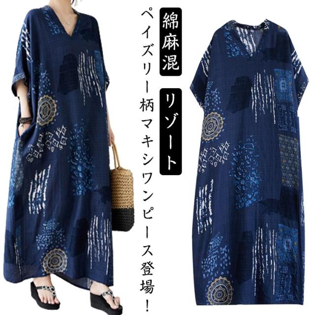 シャツワンピース 楽ちん リゾート マキシワンピース 体型カバー 総柄 綿麻混 デート 半袖 ロング 着?せ ワンピース リネン風ワンピース 体型カバー 大きいサイズ 夏 二つの腕カバー 日常 外出 レディース マキシワンピース ママ 20代 30代 40代