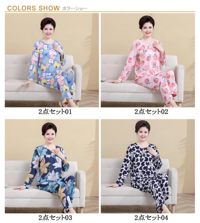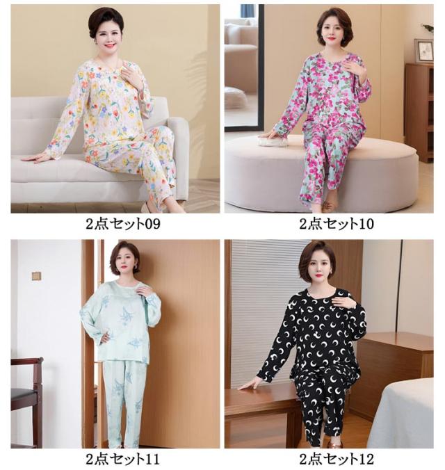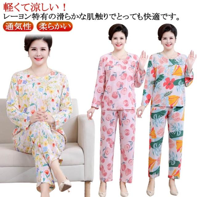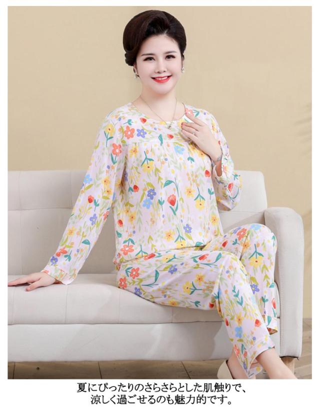 長袖 夏用 花柄 秋 パジャマ パジャマ レディース 薄手 春 レディース 部屋着 長袖 2点セット ルームウェア セットアップ 夏 寝間着 寝巻き 上下セット 可愛い 大きいサイズ ウエストゴム 柔らかい パジャマ 30代 40代
