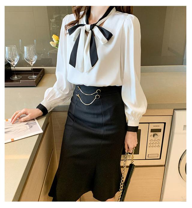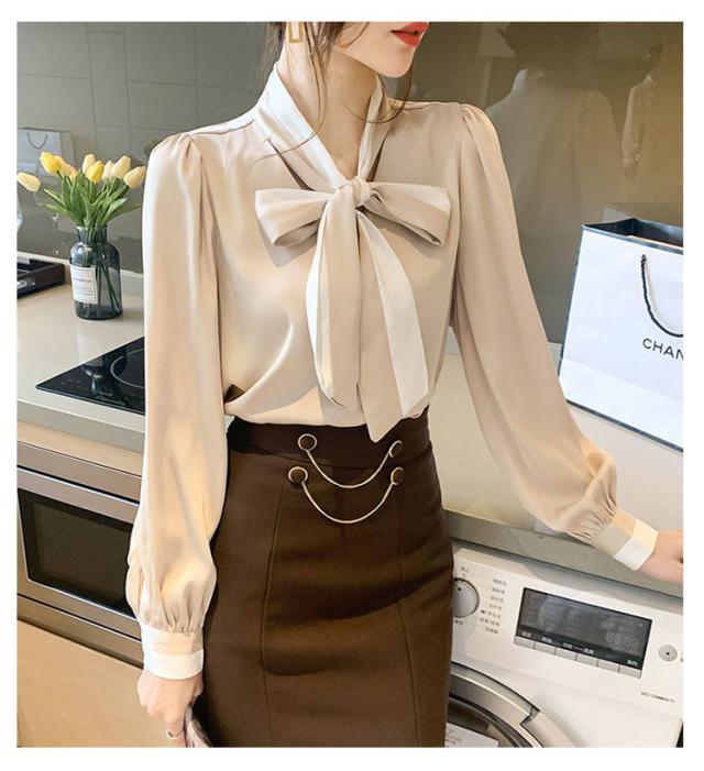ボウタイリボン 長袖 配色 トップス ボウタイブラウス ボウタイ デート リボン ブラウス 配色ボウタイブラウス 配色ボウタイブラウス きれいめ レディース お出掛け オフィス 通勤 OL 日常 エレガント 卒業式 入学式 入園式