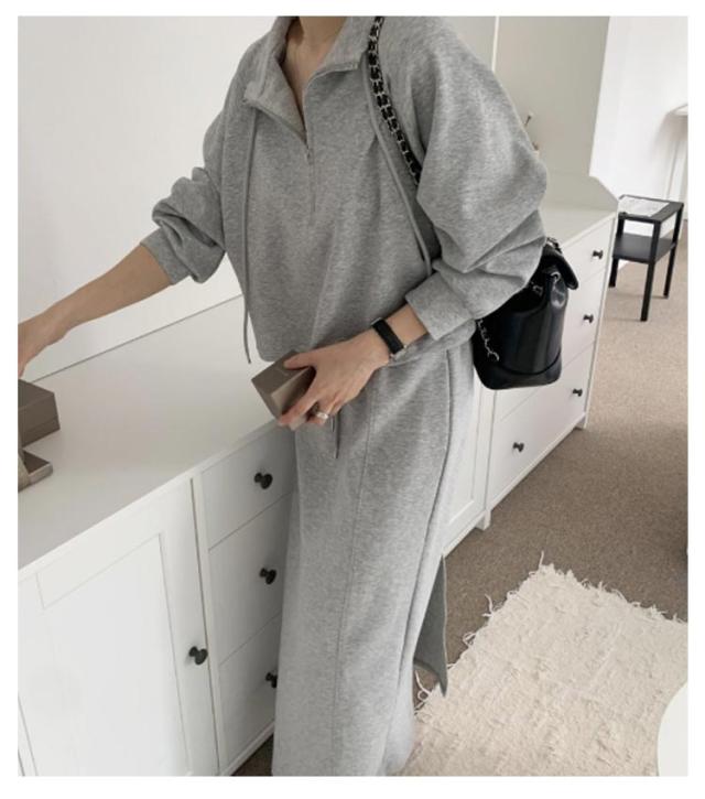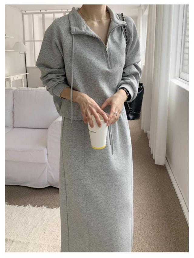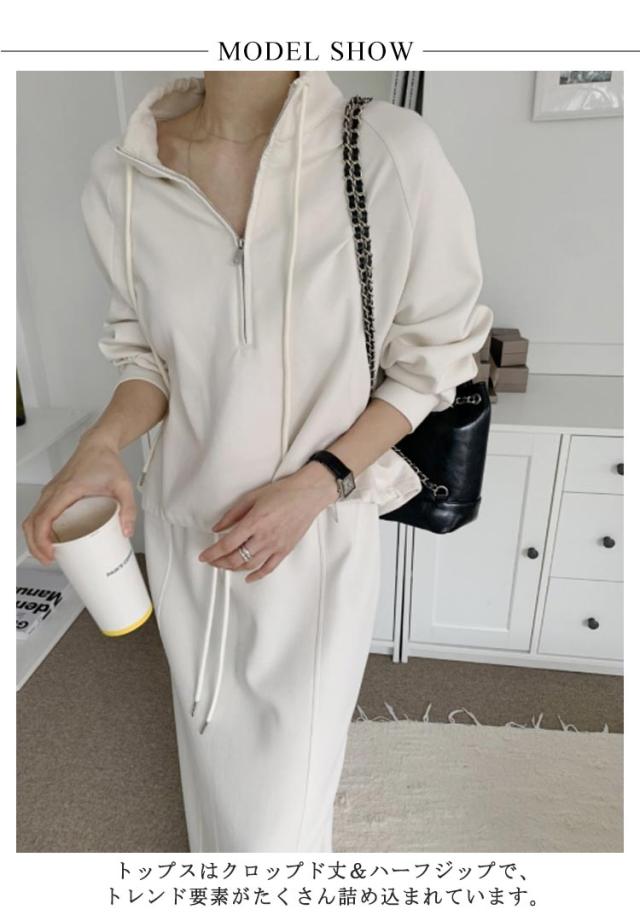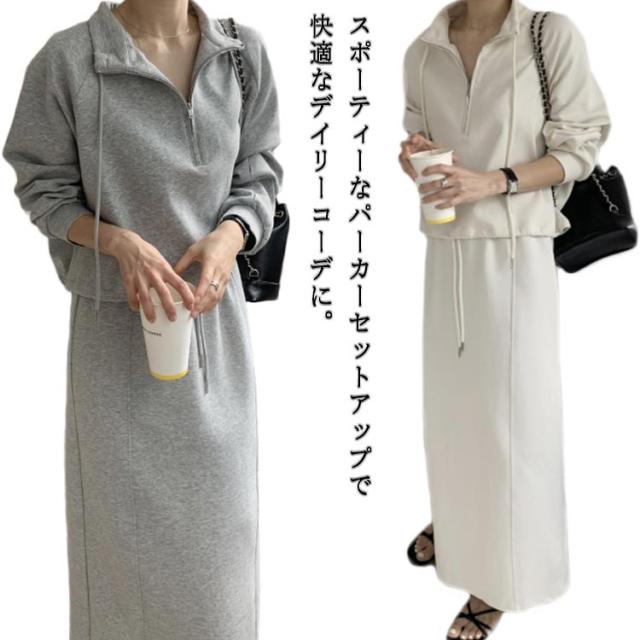 スウェット レディース 長袖 上下セット パーカー ロングスカート ハーフジップ ゆったり トレーナー タイトスカート スカート Iライン ロングスカート オーバーシルエット セットアップ 楽ちん ウエストゴム