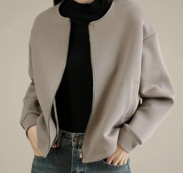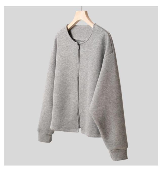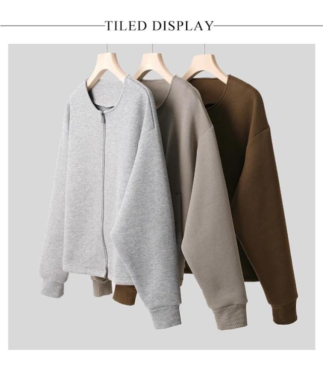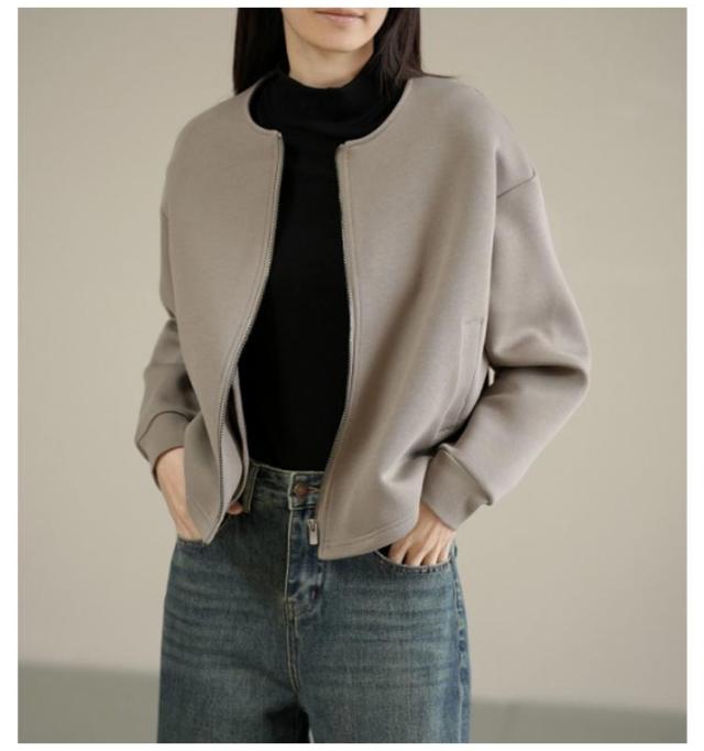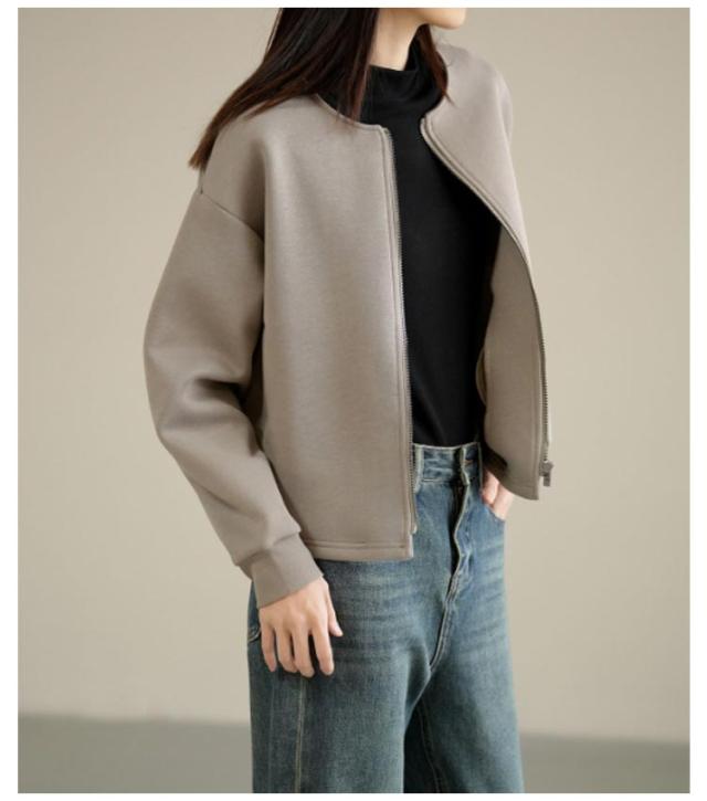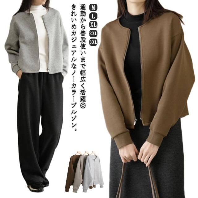 おしゃれ ジップアップ 羽織 長袖 ノーカラーブルゾン ショート丈 スウェット ノーカラー オーバーサイズ レディース 上着 50代 アウター ジャケット ブルゾン かわいい 大人 20代 30代 40代 ブルゾン 韓国