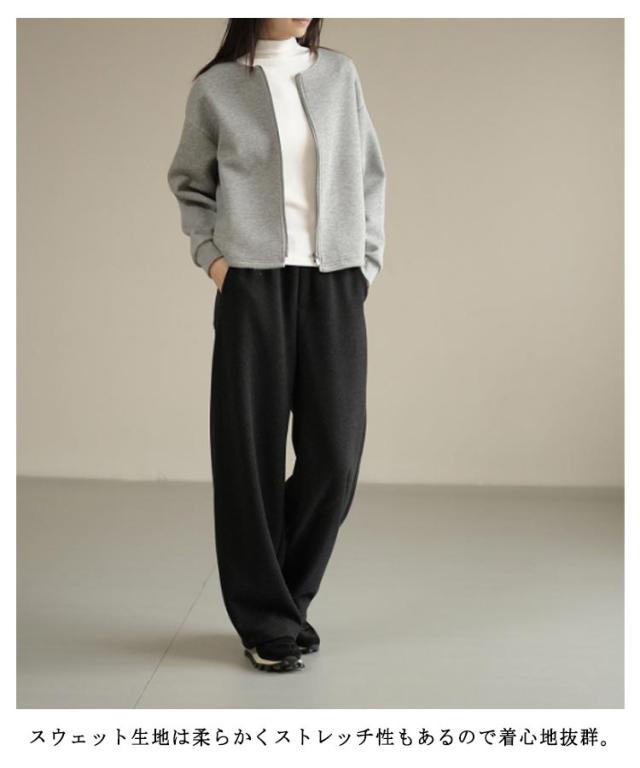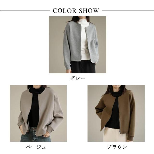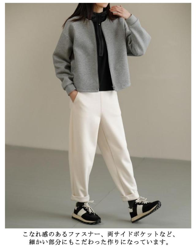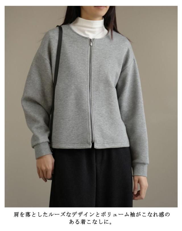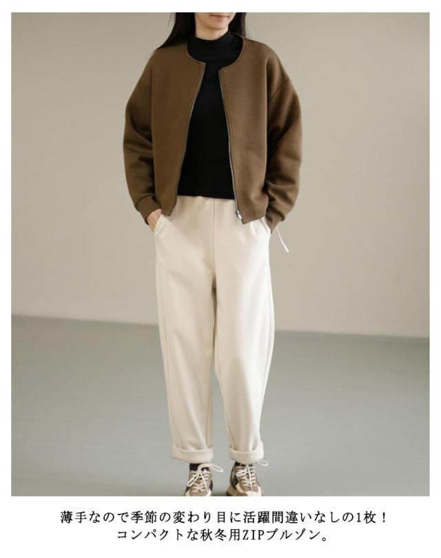 | 通勤から普段使いまで幅広く活躍◎きれいめカジュアルなノーカラーブルゾン。 すっきりとしたノーカラーデザインできれいめコーデとも相性抜群! こなれ感のあるファスナー、両サイドポケットなど、細かい部分にもこだわった作りになっています。 スウェット生地は柔らかくストレッチ性もあるので着心地抜群。 肩を落としたルーズなデザインとボリューム袖がこなれ感のある着こなしに。 薄手なので季節の変わり目に活躍間違いなしの1枚!コンパクトな秋冬用ZIPブルゾン。 | |