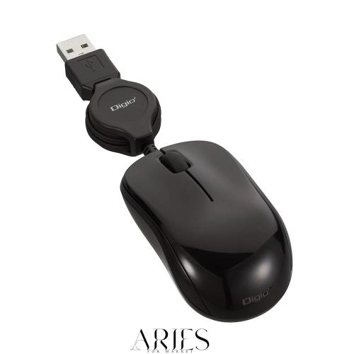 ◆商品名:ナカバヤシ(Nakabayashi) Digio2 マウス 小型 巻取 有線 3ボタン BlueLED ブラック Z8641