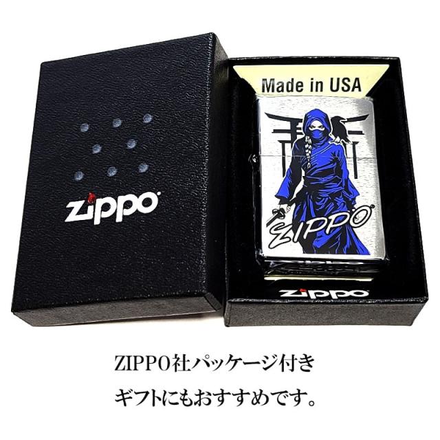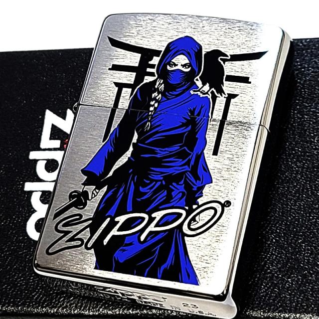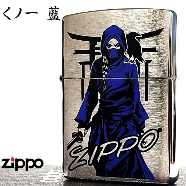 ZIPPO ライター くノ一 藍 忍者 和柄 ジッポ シルバーサテン仕上げ かっこいい 渋い 日本 和風 メンズ プレゼント ギフト