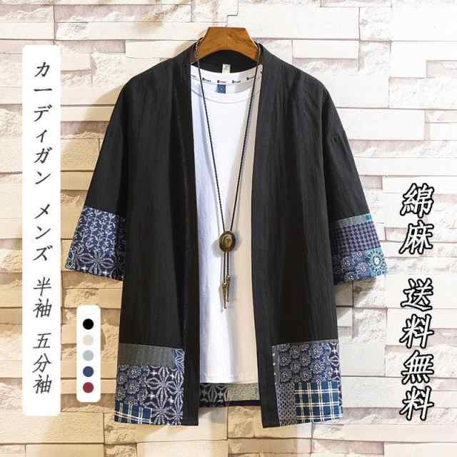 カーディガン メンズ 半袖 五分袖 サマーニット リネン 麻 綿麻 コットンリネン ボタンレス 羽織り トップス カジュアル キレイめ