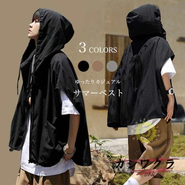 サマーベスト フード付 メンズ ベスト 前開き 夏 ジレ 薄手 ジレベスト ゆったり カジュアル フード付きベスト ジレベスト おしゃれ オーバーサイズ