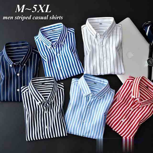 ボタンダウンシャツ メンズ 長袖 おしゃれ ストライプ 開襟シャツ ストラップ シンプル スリム カジュアルシャツ Yシャツ 通勤 就職 ビジネス トップス40代
