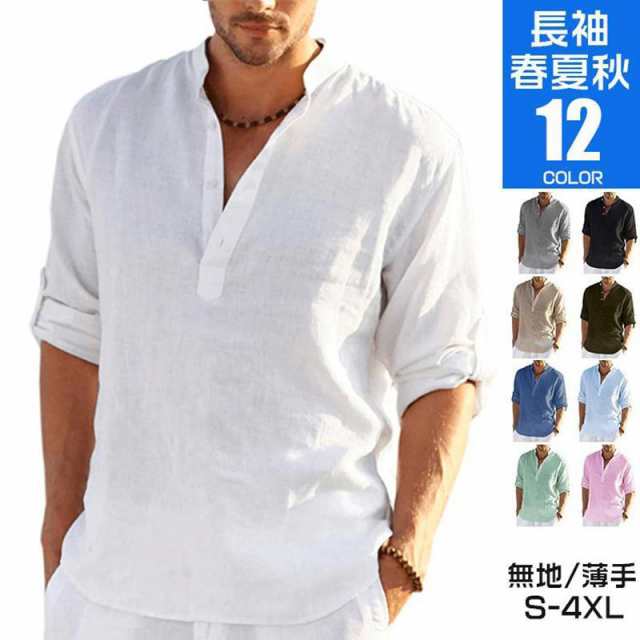 長袖シャツ メンズ カジュアルシャツ 無地 カプリシャツ スタンドカラーシャツ 綿麻風 ちょいワル 春服 夏服 20代 30代 40代 50代 父の日 プレゼントギフト 敬老の日 おしゃれ プルオーバーシャツ 薄手 秋服 白シャツ リラックス トップス 開襟シャツ コットンシャツ セール きれいめ リゾート 旅行 大きいサイズ