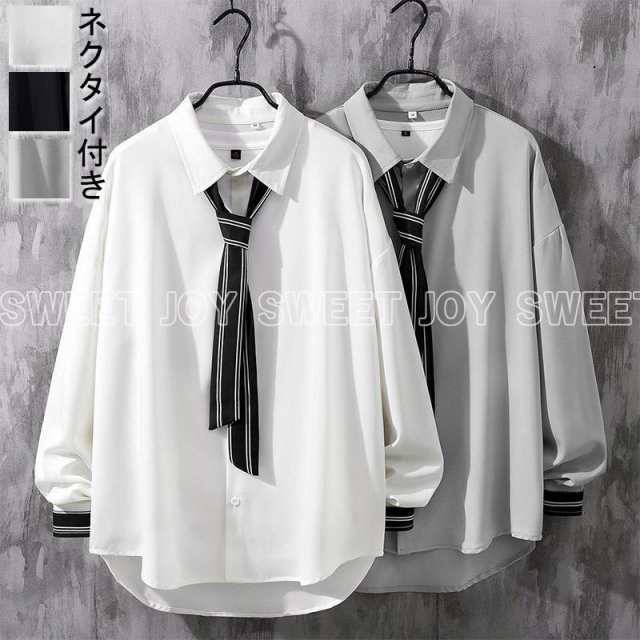 ネクタイ付き シャツ 長袖シャツ メンズ レディース カジュアルシャツ 大きいサイズ トップス 春物 夏 白シャツ ドロップショルダー おしゃれ 韓国ファッション