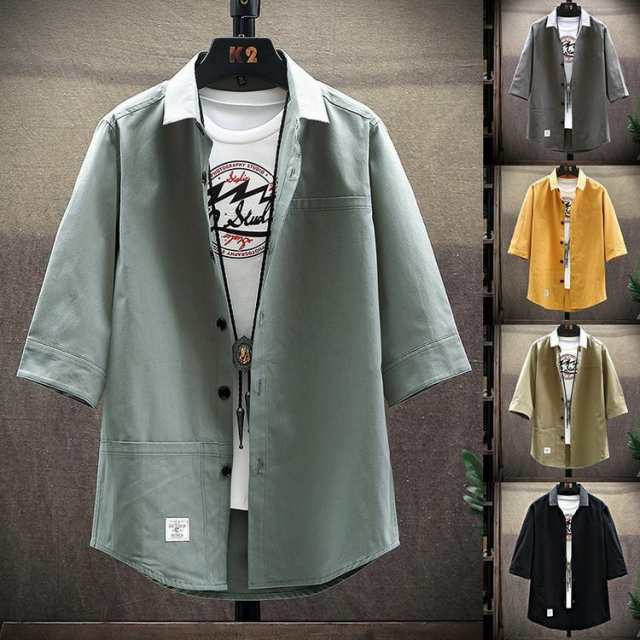 メンズ シャツ 七分袖 カジュアルシャツ ワークシャツ トップス 100%綿 きれいめ サマー 夏