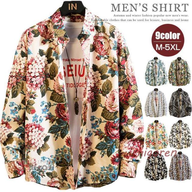 アロハシャツ メンズ カジュアルシャツ 花柄シャツ 長袖シャツ 春物 春服 レディース トップス 柄シャツ ボタニカル