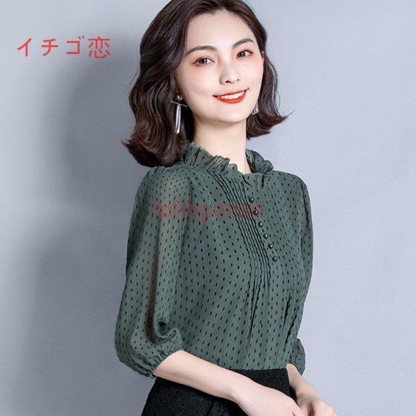 ブラウス レディース 白 オフィス 夏 おしゃれ 半袖 40代 仕事 襟付き フリル トップス シャツ シフォン 水玉 きれいめ 大きいサイズ 着痩せ 大人 上品 通勤 OL