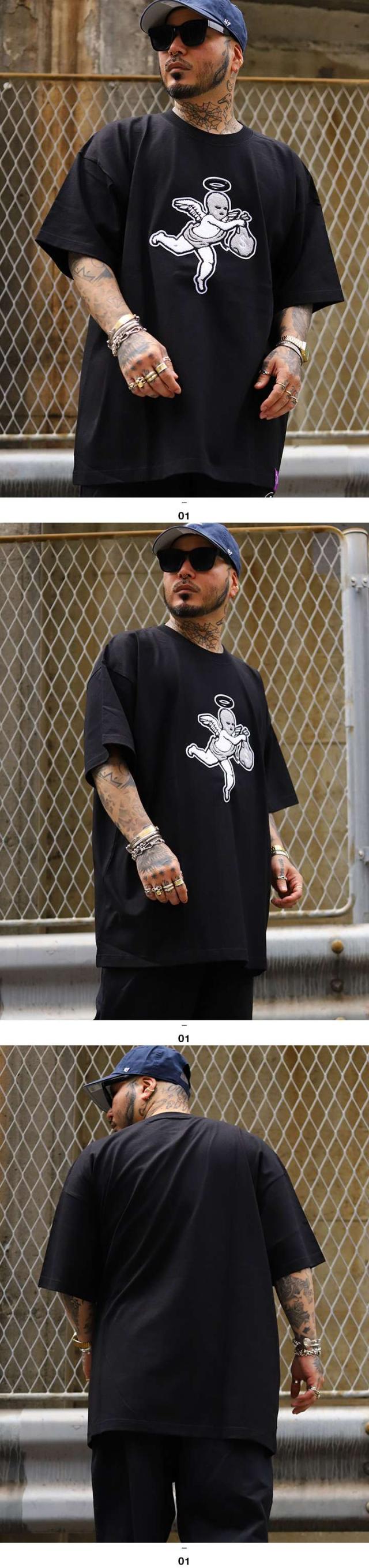 送料込 XL-3XL かっこいい おしゃれ エンジェル メンズファッション オーバーサイズ メンズTシャツ 生地 男女兼用 派手 ダンス衣装 ヘヴィーウェイト ダンス アメ車 B系Tシャツ