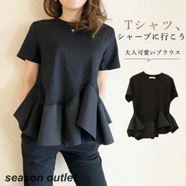 Tシャツ 裾フリル 半袖 ペプラム 無地 トップス 春 夏 レディース トップス 春夏新作 おすすめ おしゃれ ファッション カジュアル